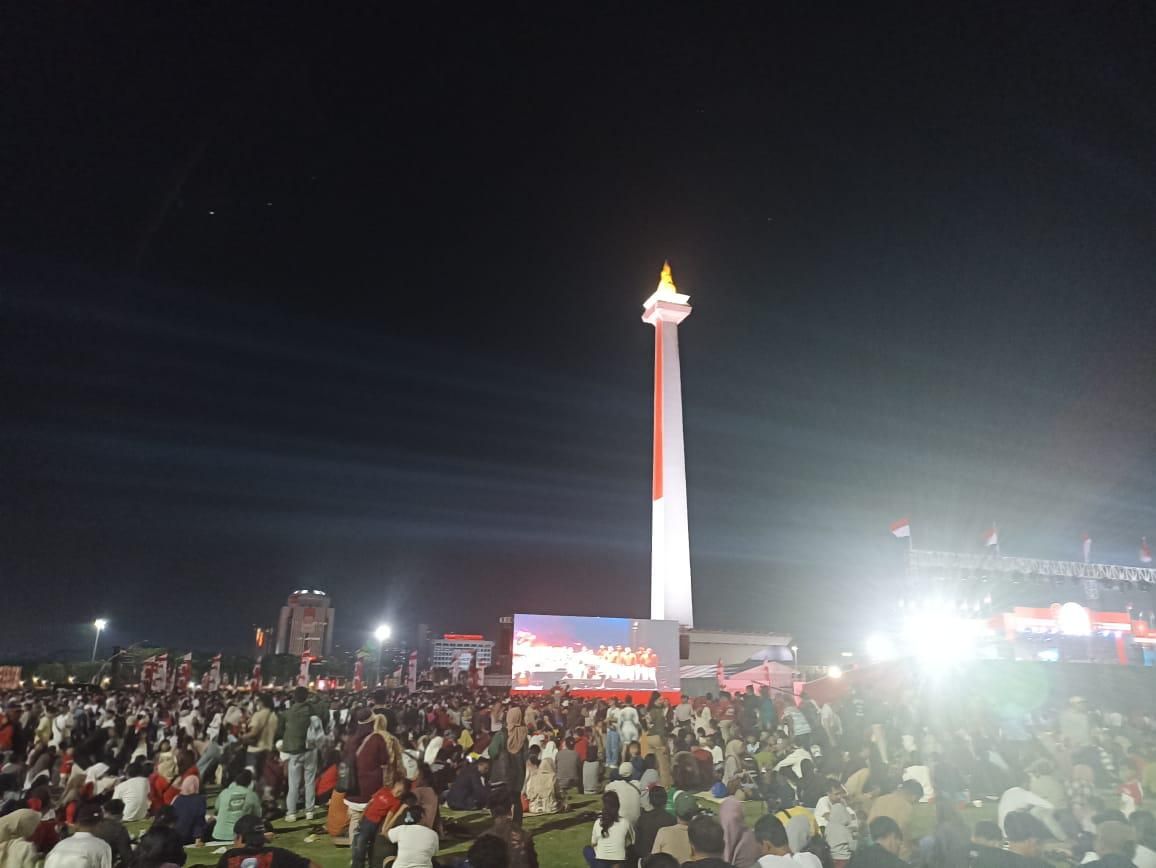 Monas dipadati warga sejak sore hingga malam hari, sampai Karnaval HUT ke-80 RI selesai.