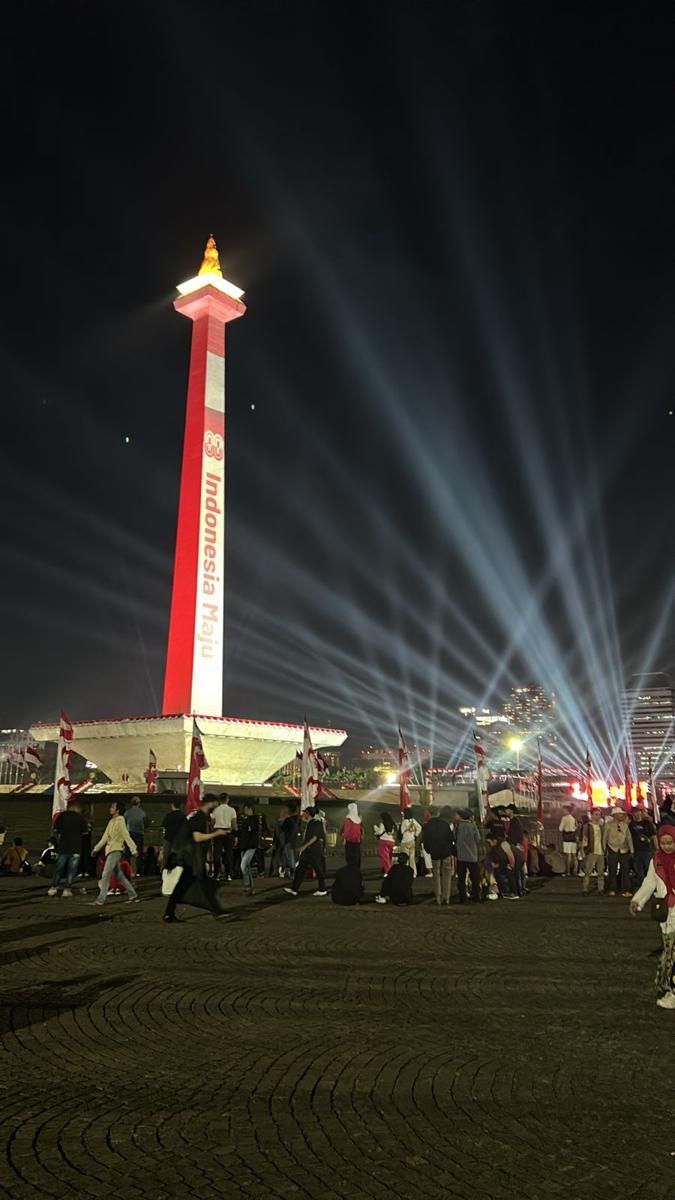 Monas bersolek dengan warna-warni, memeriahkan Karnaval HUT ke-80 RI.