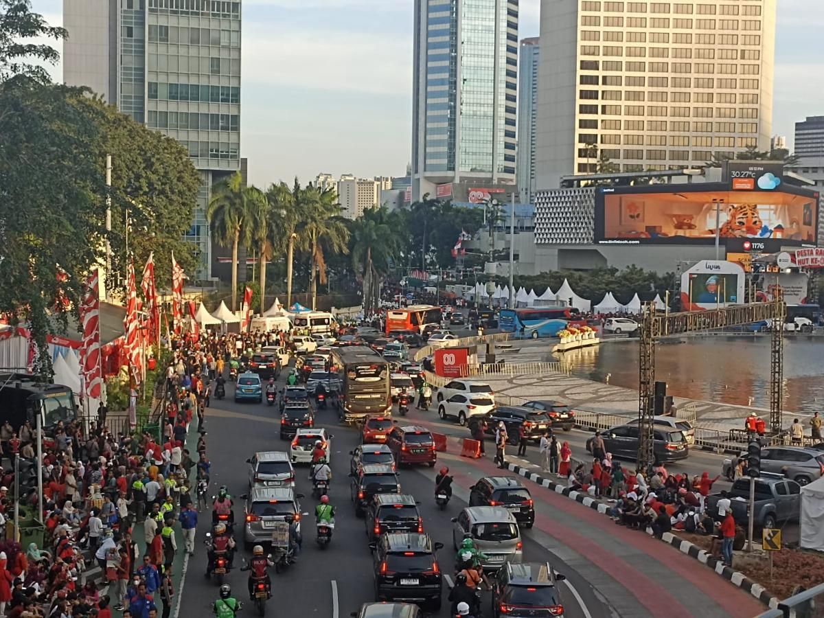 Warga juga memadati sepanjang jalan Thamrin hingga Sudirman sejak sore hari.